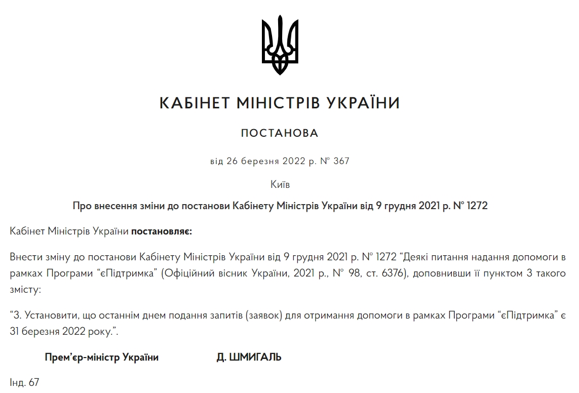 Уряд обмежив дату подачі заявок на отримання 6,5 тисяч в межах «єПідтримки»