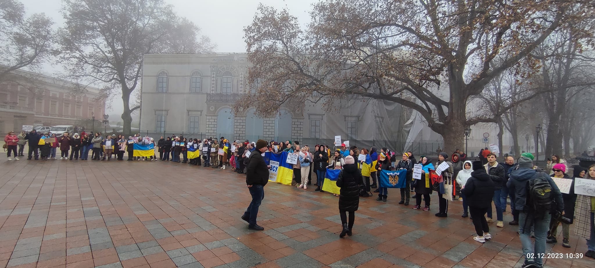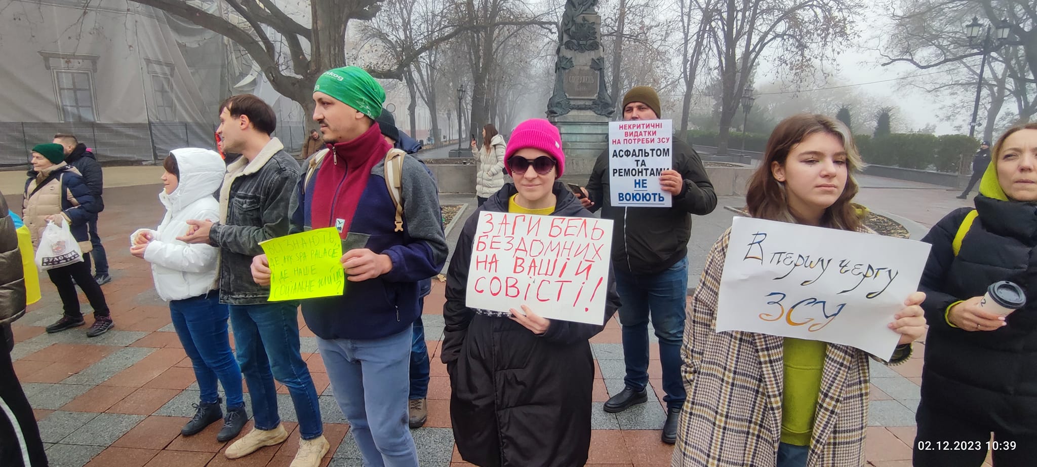 Понад сотня одеситів вийшли у суботу, 2 грудня, на акцію протесту проти проведення бюджетним коштом закупівель, які мітингарі вважають недоцільними у воєнний час.
