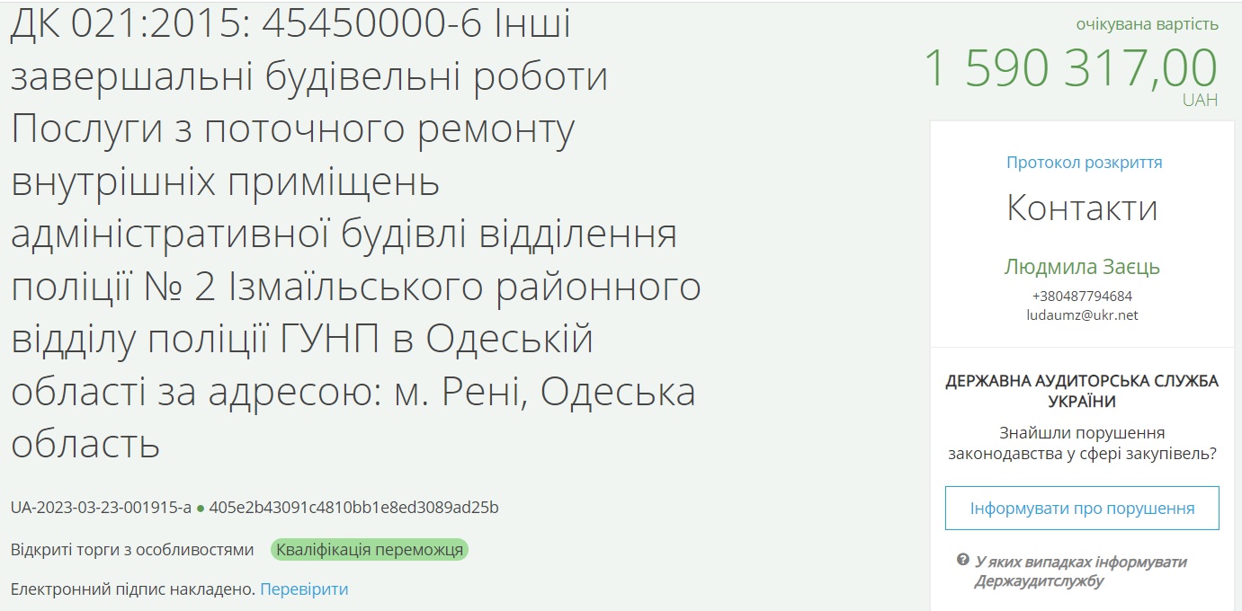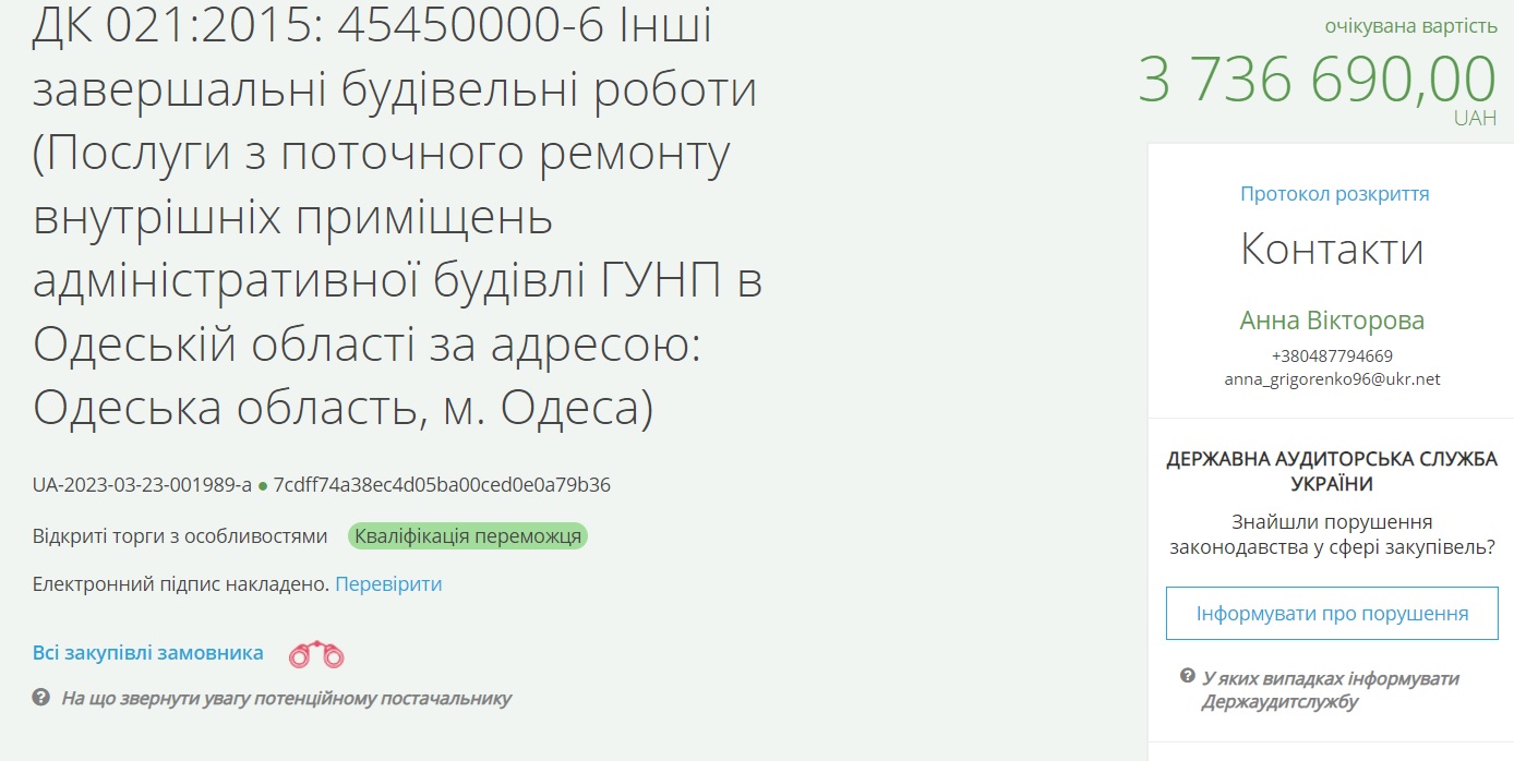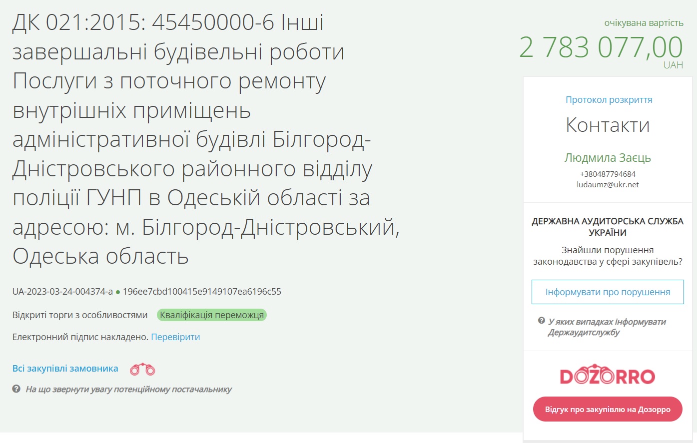 Головне управління Національної поліції в Одеській області провело три тендери для обрання підрядників, яким замовлять послуги з поточного ремонту внутрішніх приміщень адміністративних будівель.