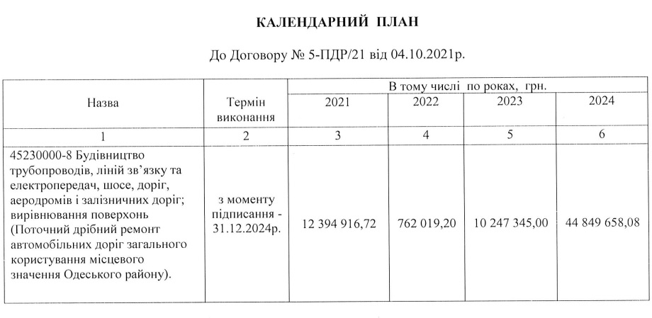 Угоду уклали 5 жовтня. Після цього терміни виконання робіт подовжували додатковими угодами й останнью встановили термін надання послуг до 31 грудня 2024 року.