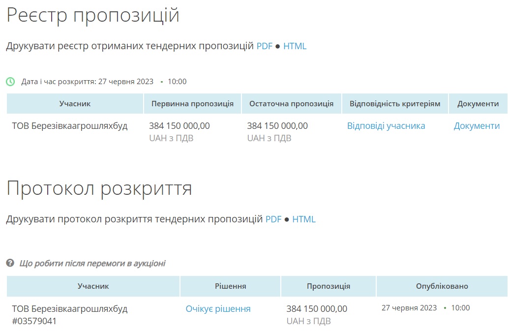 Відповідна інформація міститься в системі електронних закупівель Prozorro.
