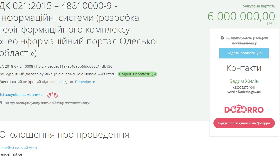 Тогда тендер выиграло ООО «И-Хаб», которое предложило выполнить работы по 5 миллионов 950 тысяч гривень. Портал должны были создать до 31 декабря 2018 года и этот срок остается неизменным.