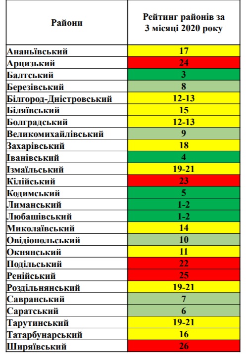 Первое и второе место разделили в рейтинге Лиманский и Любашевский районы.