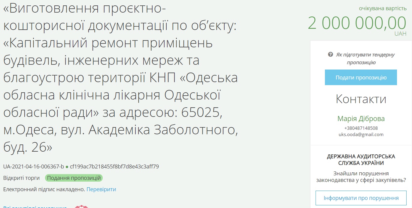 Департамент капітального будівництва та дорожнього господарства Одеської обласної державної адміністрації оголосило тендер для обрання компанії, яка розробить проєктно-кошторисну документацію капітального ремонта Одеської обласної лікарні.