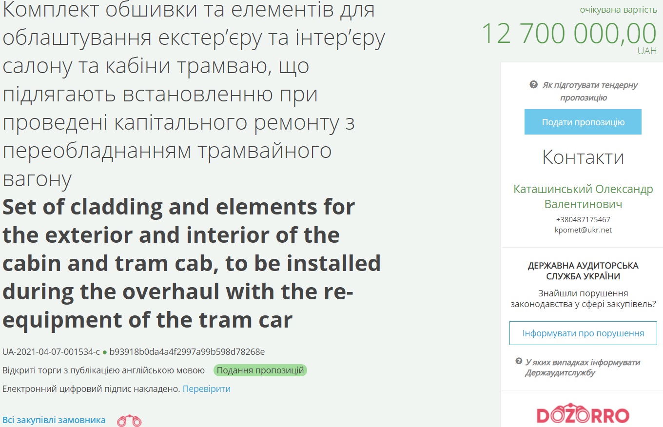 За даними системи йдеться про матеріали, що підлягають встановленню при проведені капітального ремонту з переобладнанням трамвайного вагону.