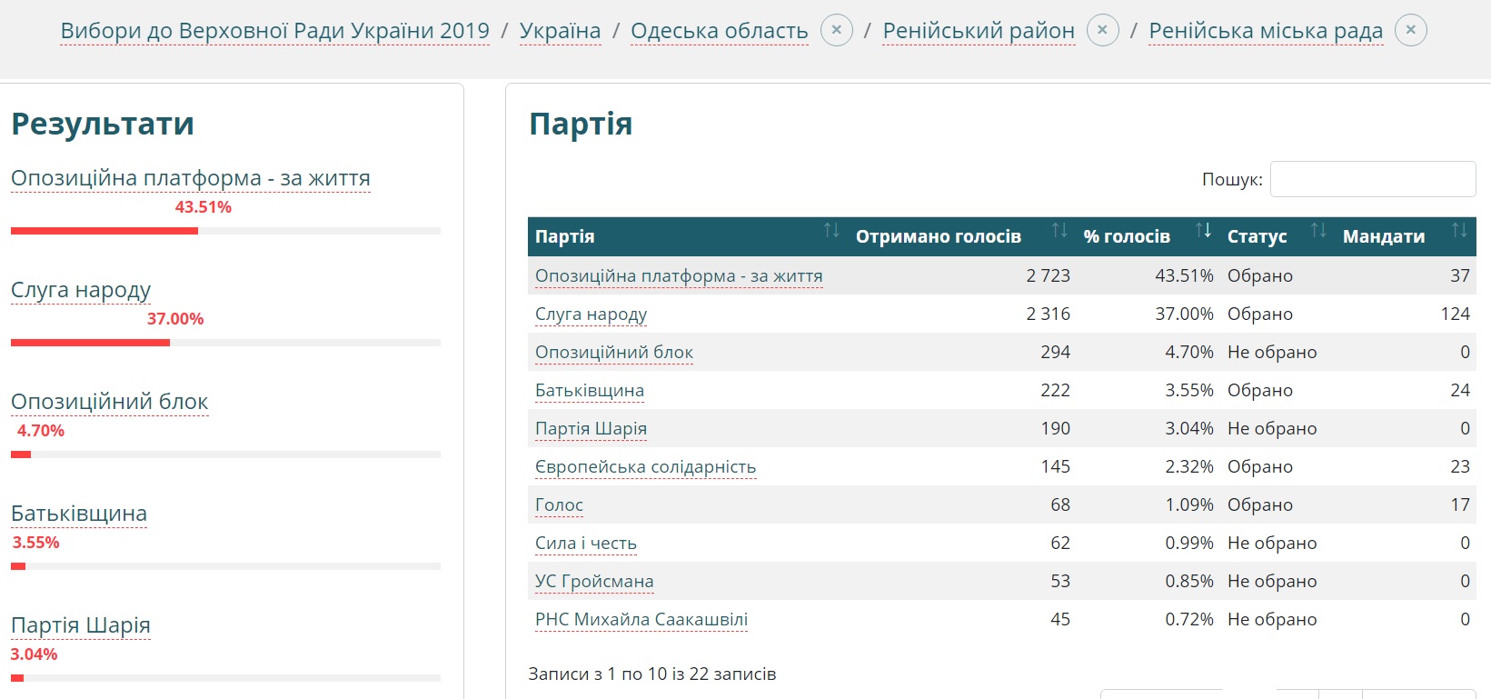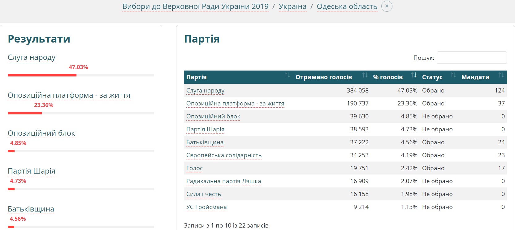 - Вибори до Верховної Ради України 2019, Одеса, область.