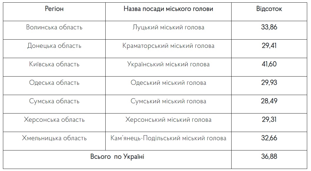 Зокрема в Одесі на дільниці прийшли 173 тисячі 461 виборець з 689 тисяч 924. Тобто 25,14%.