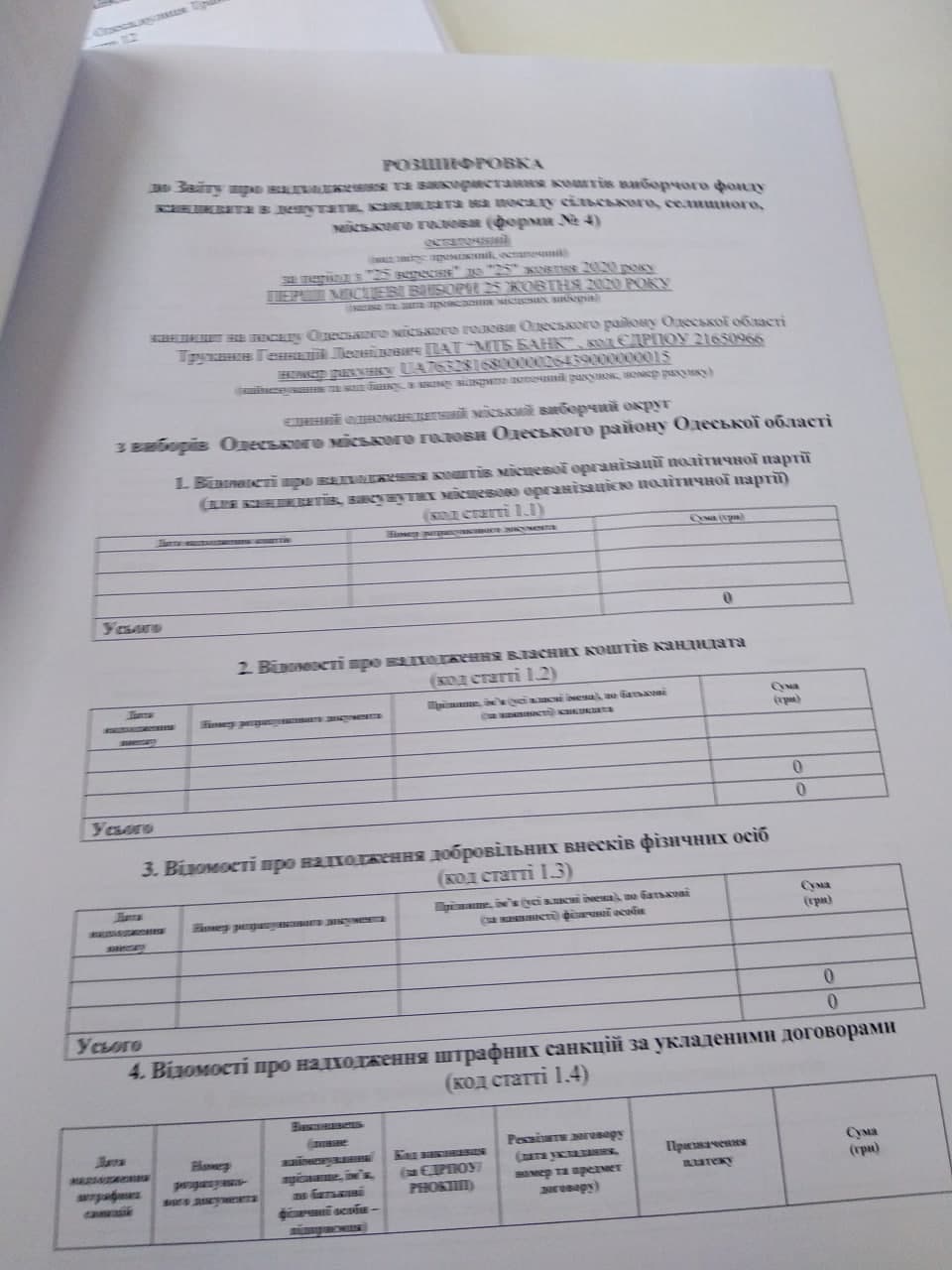 Нагадаємо, в листопаді Одеська міська територіальна виборча комісія оприлюднила на офіційному сайті Одеської міської ради проміжні фінансові звіти 10 з 23 кандидатів на посаду Одеського міського голови.