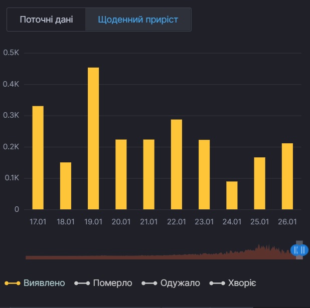 Міністерство охорони здоров'я зазначає, що в Одеській області за добу 19 січня було зареєстровано 223 нових випадки COVID-19 і це був другий за кількістю показник в країні.