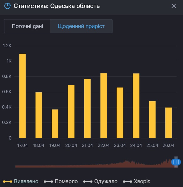 Зазначимо, що наразі зафіксована 25 квітня кількість є найнижчою за тиждень.