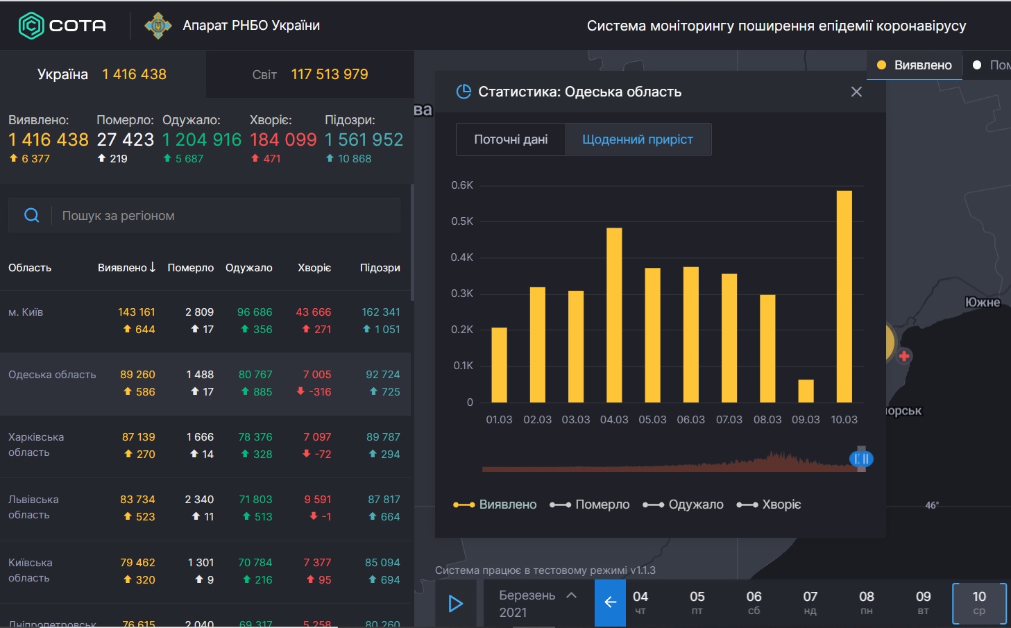 Нагадаємо, Міністерство охорони здоров'я повідомило про 63 нових підтверджених випадки COVID-19, зареєстрованих в Одеській області за добу 8 березня, летальних випадків не зареєстровано.