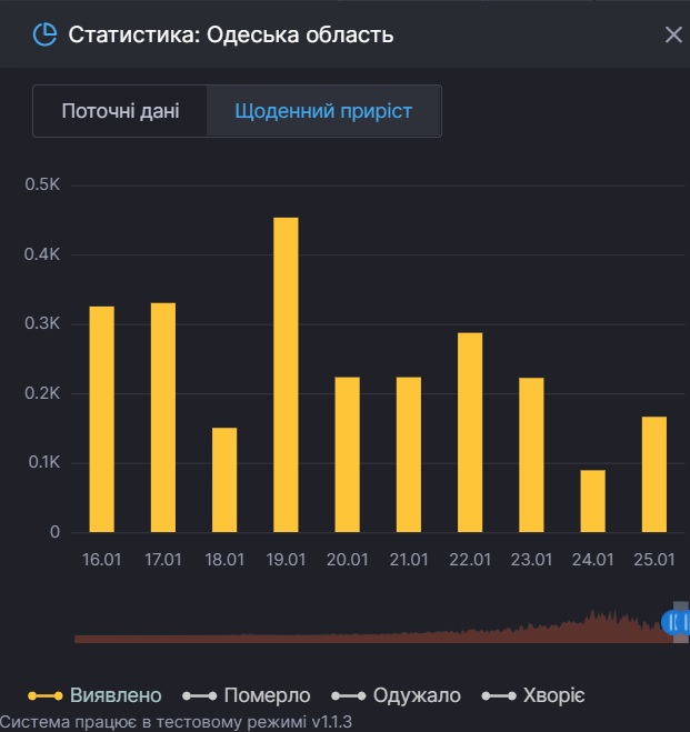 Міністерство охорони здоров'я зазначає, що в Одеській області за добу 19 січня було зареєстровано 223 нових випадки COVID-19 і це був другий за кількістю показник в країні.