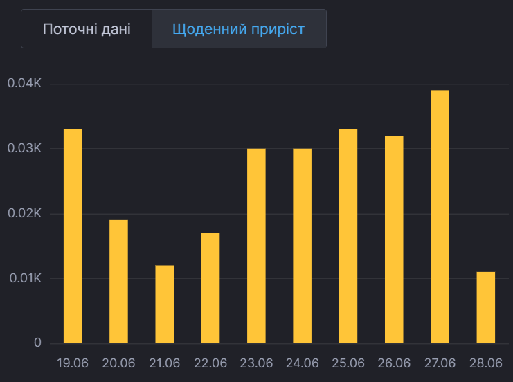 Найбільший показник був вчора, 27 червня - 39 випадків, а найнижчий сьогодні - 11.