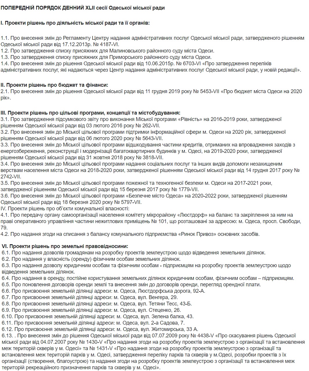 Орієнтований порядок денний сесії Одеської міської ради, яка планується 29 квітня наразі орієнтований на питання пов'язані з міськими програмами, та землею.