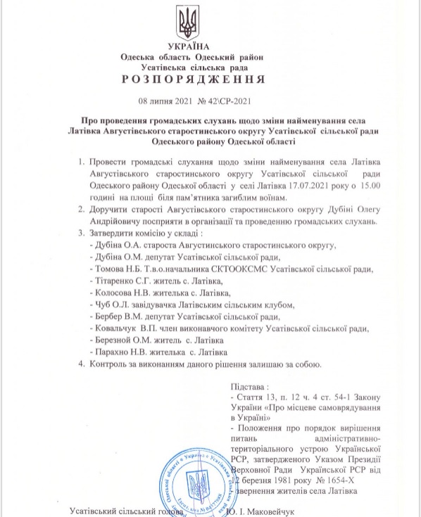 У селі Латівка (Усатівська громада Одеського району) відбулися громадські слухання щодо перейменування села.