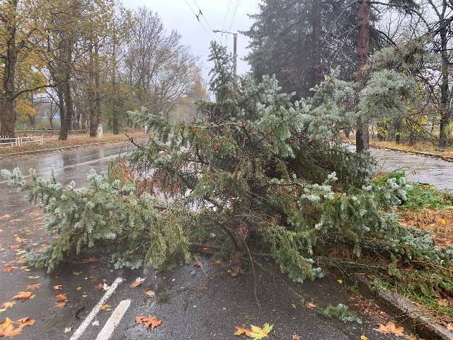 Також повідомляється про те, що сильний вітер повалив дерева. Наразі відомо про шість повалених дерев. Комунальники їх прибирають.