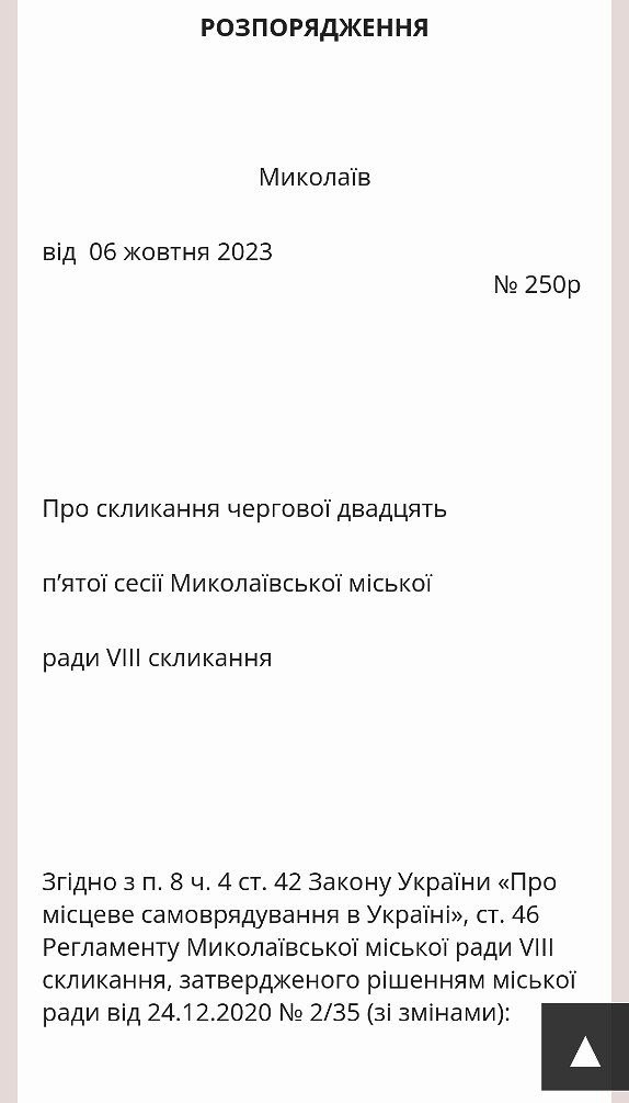 Скликати чергову двадцять п'яту сесію Миколаївської міської ради VIII скликання 26 жовтня 2023 року об 11:00. Провести пленарне засідання у дистанційному режимі (форма – відеоконференція), — зазначається в документі.