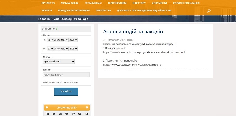 Про це стало відомо з Розпорядження Миколаївського міського голови Олександра Сєнкевича від 13 листопада 2025 року № 579р "Про скликання чергової сорок дев'ятої сесії Миколаївської міської ради VIII скликання".