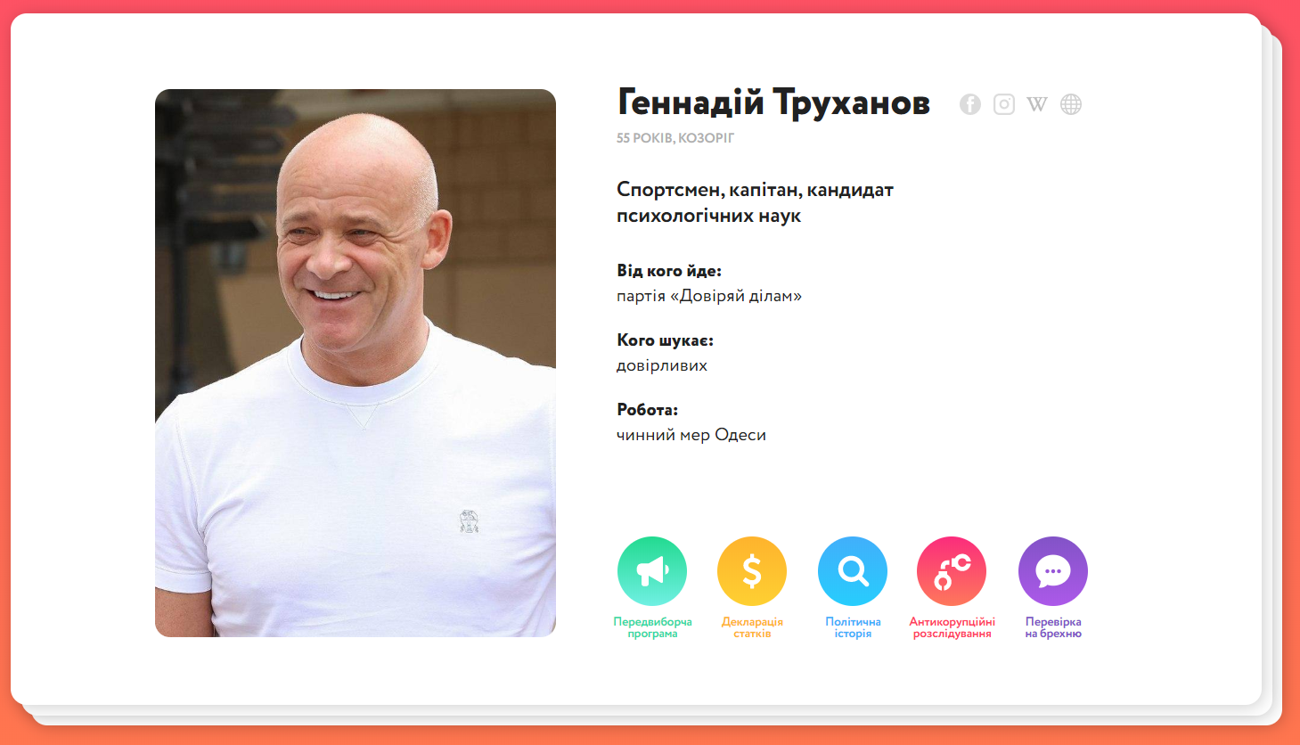 Цікаво, що деякі кандидати не розмістили у відкритому доступі своїх програм чи навіть фото. Але виборці мають знати, за що віддавати свій голос. Якщо ж ви такий кандидат - надішліть нам цю інформацію і ми оновимо ваш профайл.