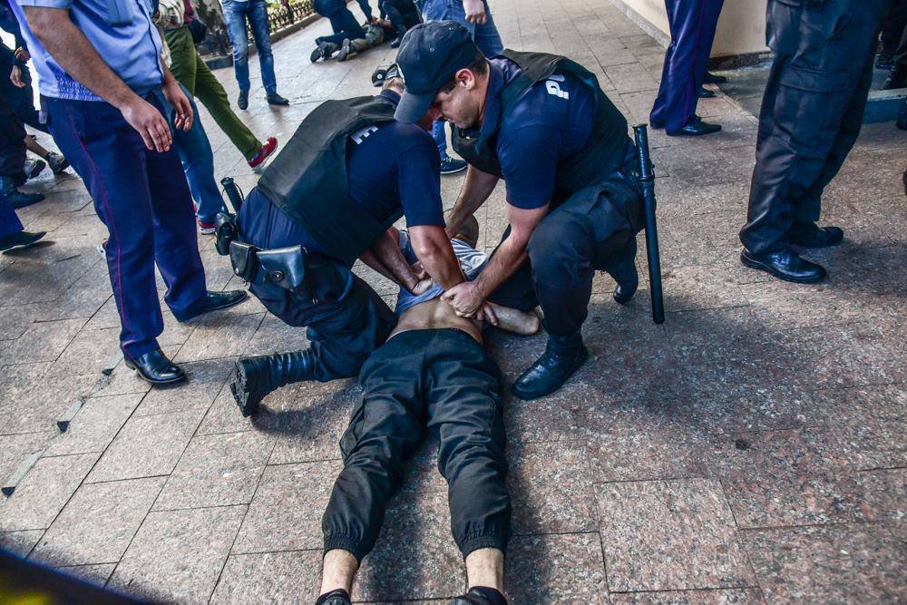 В это же время со стороны переулка Чайковского несколько молодых мужчин попытались прорвать кордон полиции. При этом полицейские применили спецсредства (дубинки) к двоим парням. Остальных 15-20 человек полицейские оттеснили в сторону и окружили плотным кольцом.