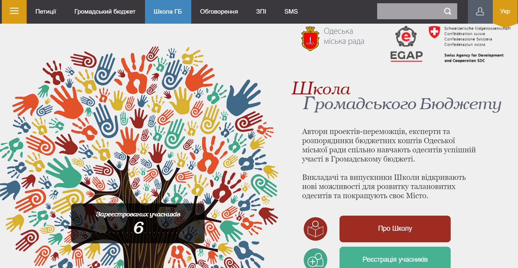 На платформе citizen.odessa.ua создан специальный раздел «Школа общественного бюджета», где одесситы могут получить информацию о целях и задачах Школы, ознакомиться с программой и календарем занятий, получить ответы на часто задаваемые вопросы, а также зарегистрироваться для участия в онлайн-обучении.