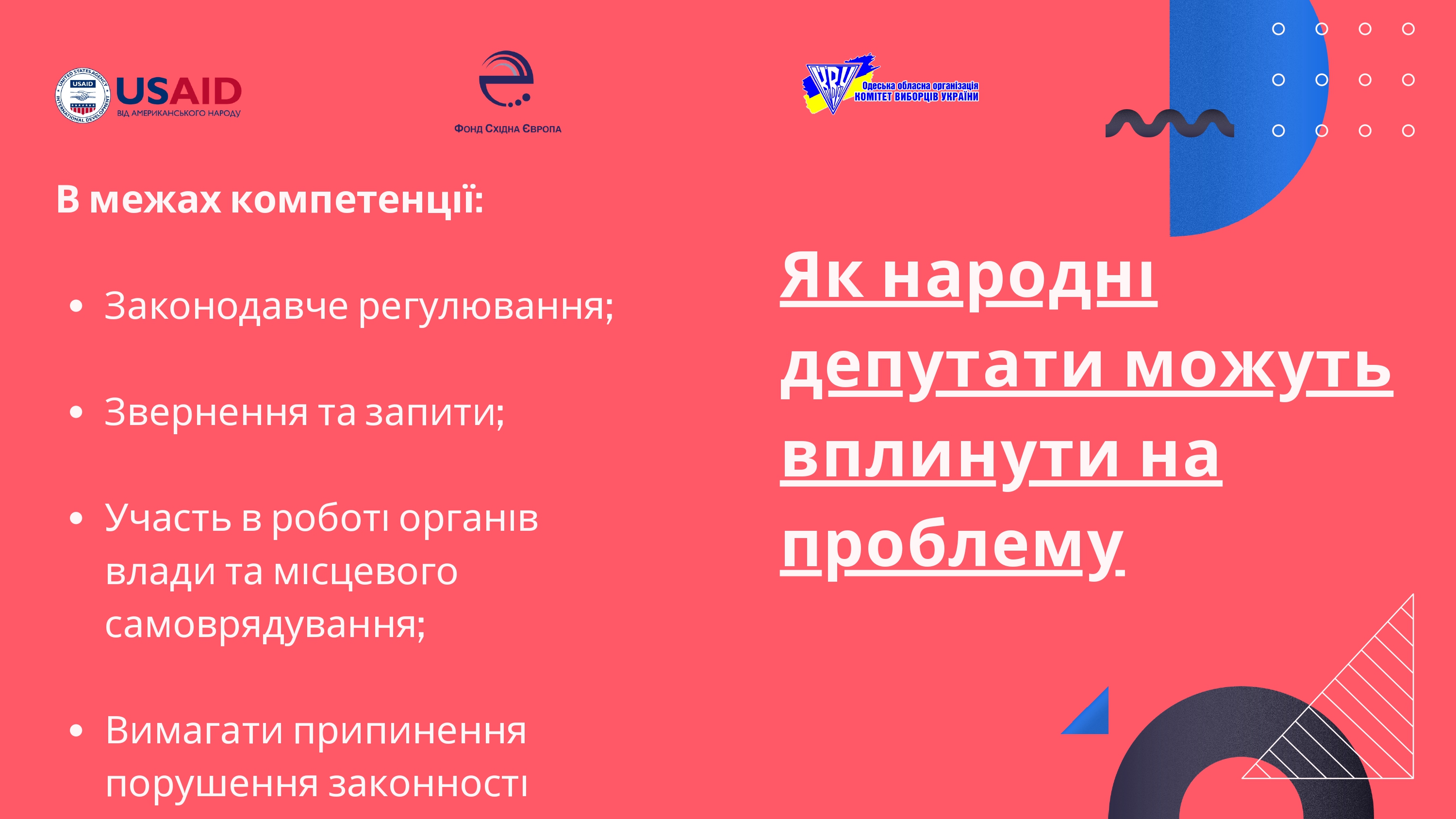 Водночас аналіз ідентифікованих командами народних депутатів проблем свідчить, що вирішення більшості не потребує повноважень народних депутатів.