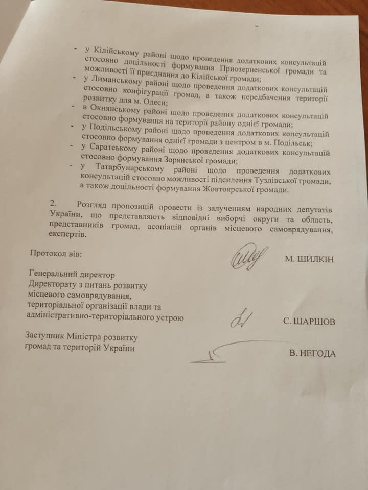 Раніше у Міністерстві висловилися проти ситуацій, коли районні центри стають окремою ОТГ, оточеною іншими. Водночас ідея «Великої Одеси», що передбачає об'єднання міста з навколишніми селами та селищами, не отримала підтримки.