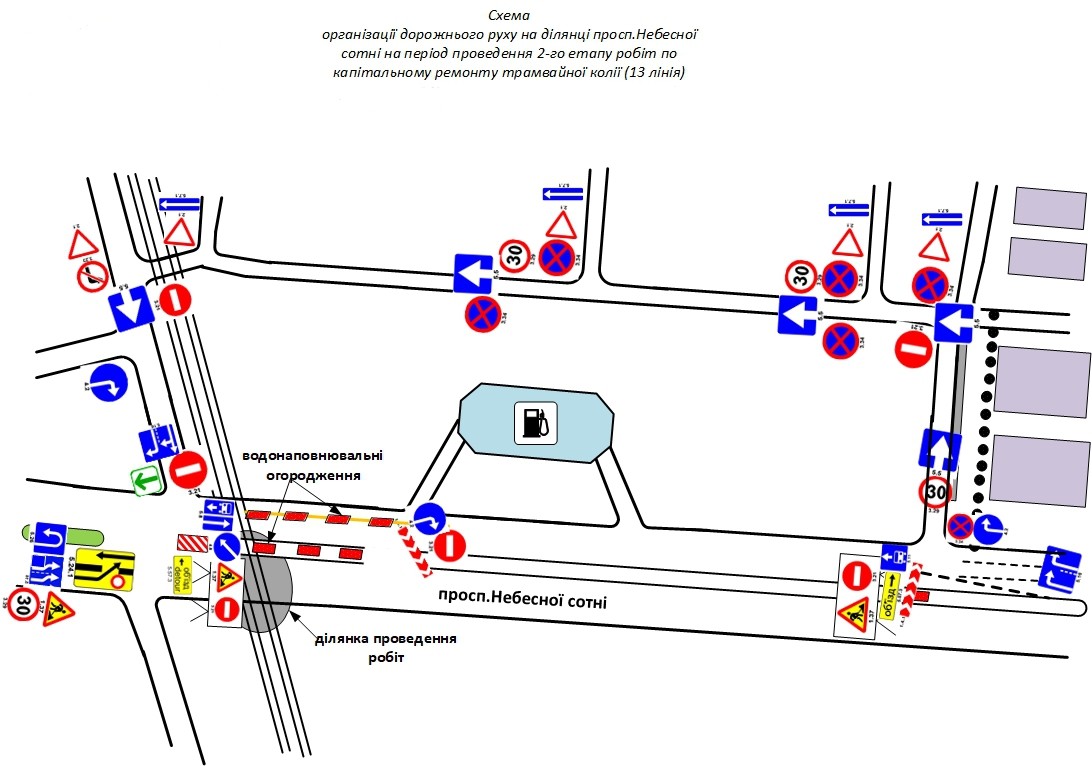 Через закриття частини перехрестя проспекту Небесної Сотні і Шкільного аеродрому відсьогодні, 11 квітня, та до 10 чеврня змінюються схема руху загального автотранспорту та схеми руху міських маршрутів загального користування.