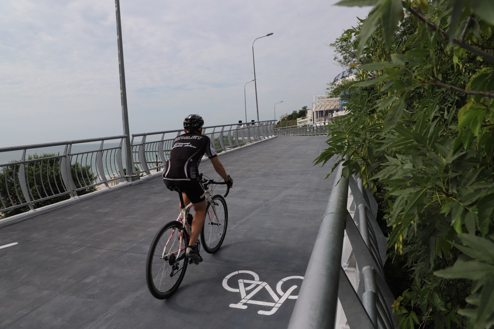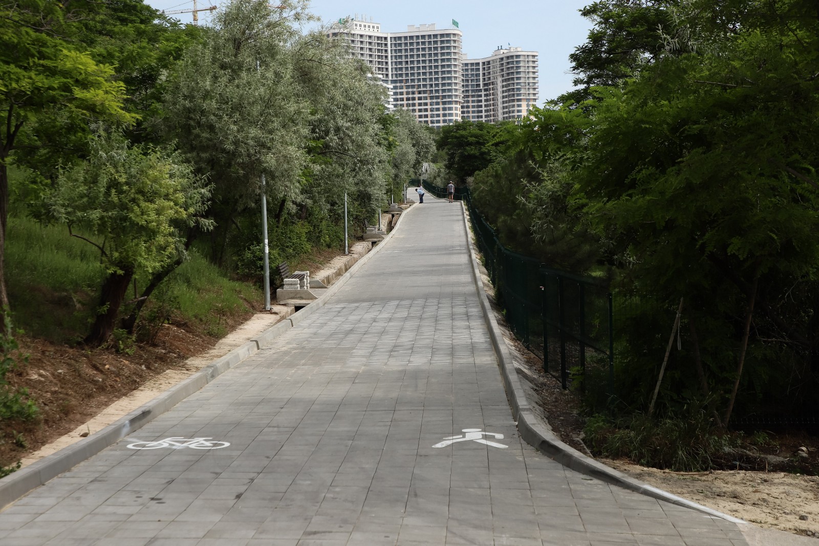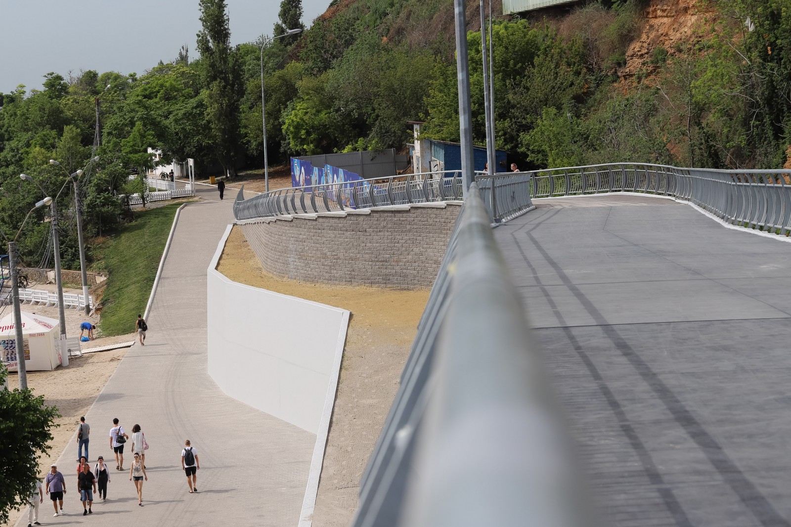 Паралельно з будівництвом естакади проводилися роботи з облаштування велопішохідної доріжки по середній терасі схилів, на ділянці від 10-ї ст. Великого Фонтану до ЖК «Морська симфонія». На сьогодні всі роботи також завершені. На доріжці передбачені місця для відпочинку, а змонтована система освітлення дозволяє перебувати тут до пізнього вечора, стверджують у пресслужбі міськради.