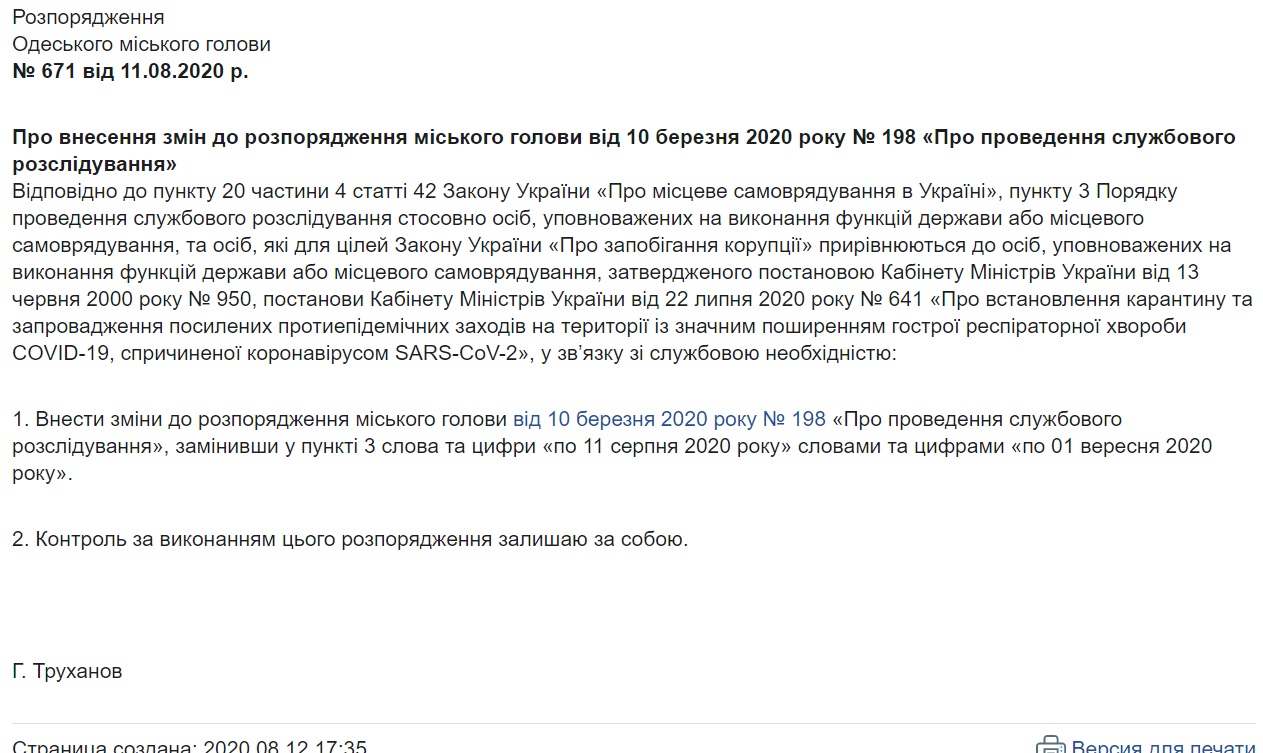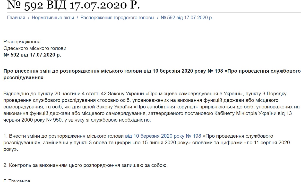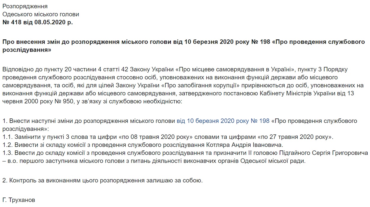 Одеський міський голова Геннадій Труханов розпорядився подовжити службове розслідування щодо дотримання керівництвом департаменту комунальної власності Одеської міської ради, встановленого порядку укладання договорів оренди на нежитлові будівлі, розташовані за адресою: в провулку Каркашадзе, 4.