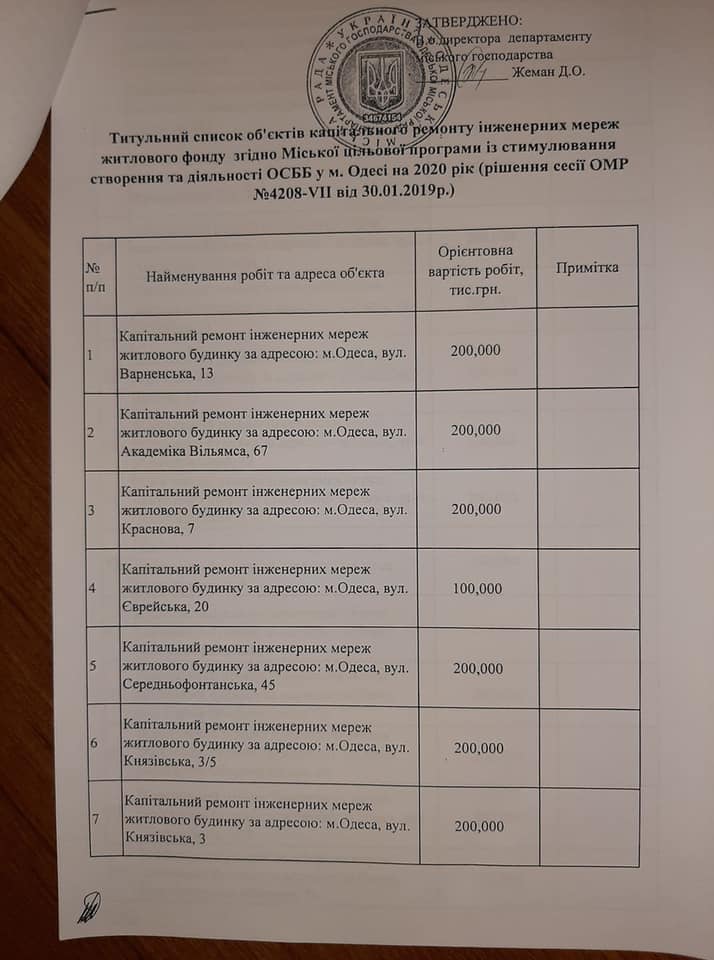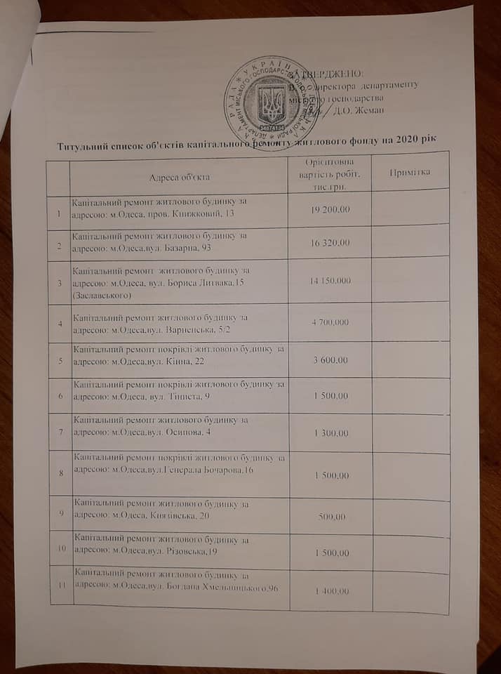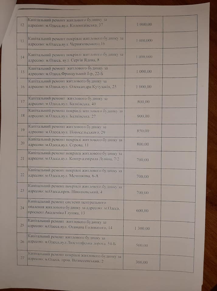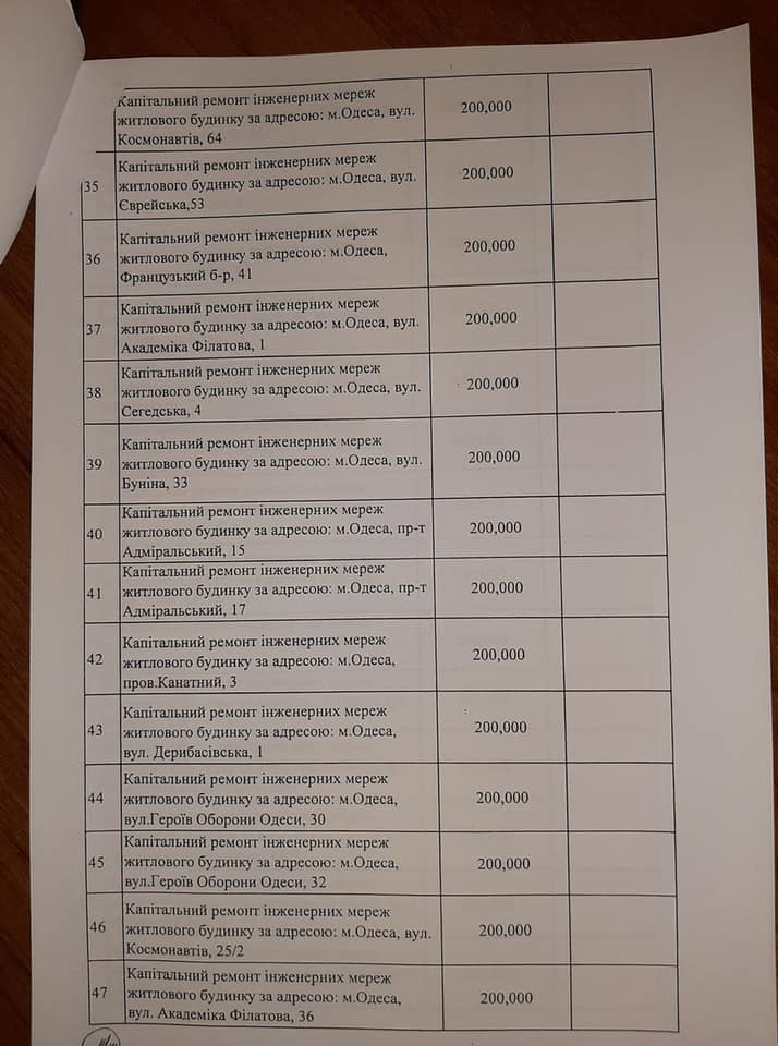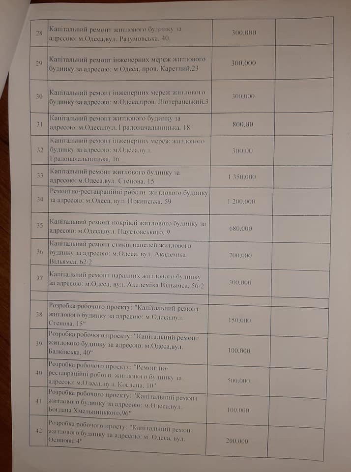 У переліку 54 житлових будинків у різних районах Одеси. У деяких з них проведуть капітальний ремонт покрівлі, в інших – капремонт інженерних мереж. На один із будинків, що на вул. Ніженській, 59, очікують ремонтно-реставраційні роботи.
