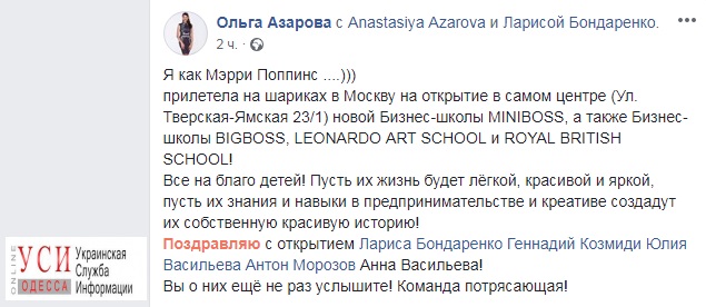 У 2018 році видання УСІ повідомило що родина Азарових відкрила приватну бізнес-школу для дітей у Москві, тобто на території країни-агресора.