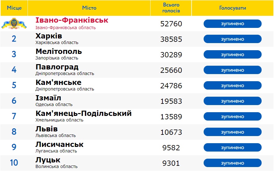 Національний всеукраїнський проєкт "Місто України" оприлюднило результати голосування у конкурсі "Місто України. Національний вибір", в якому опинилися Одеса та Ізмаїл.