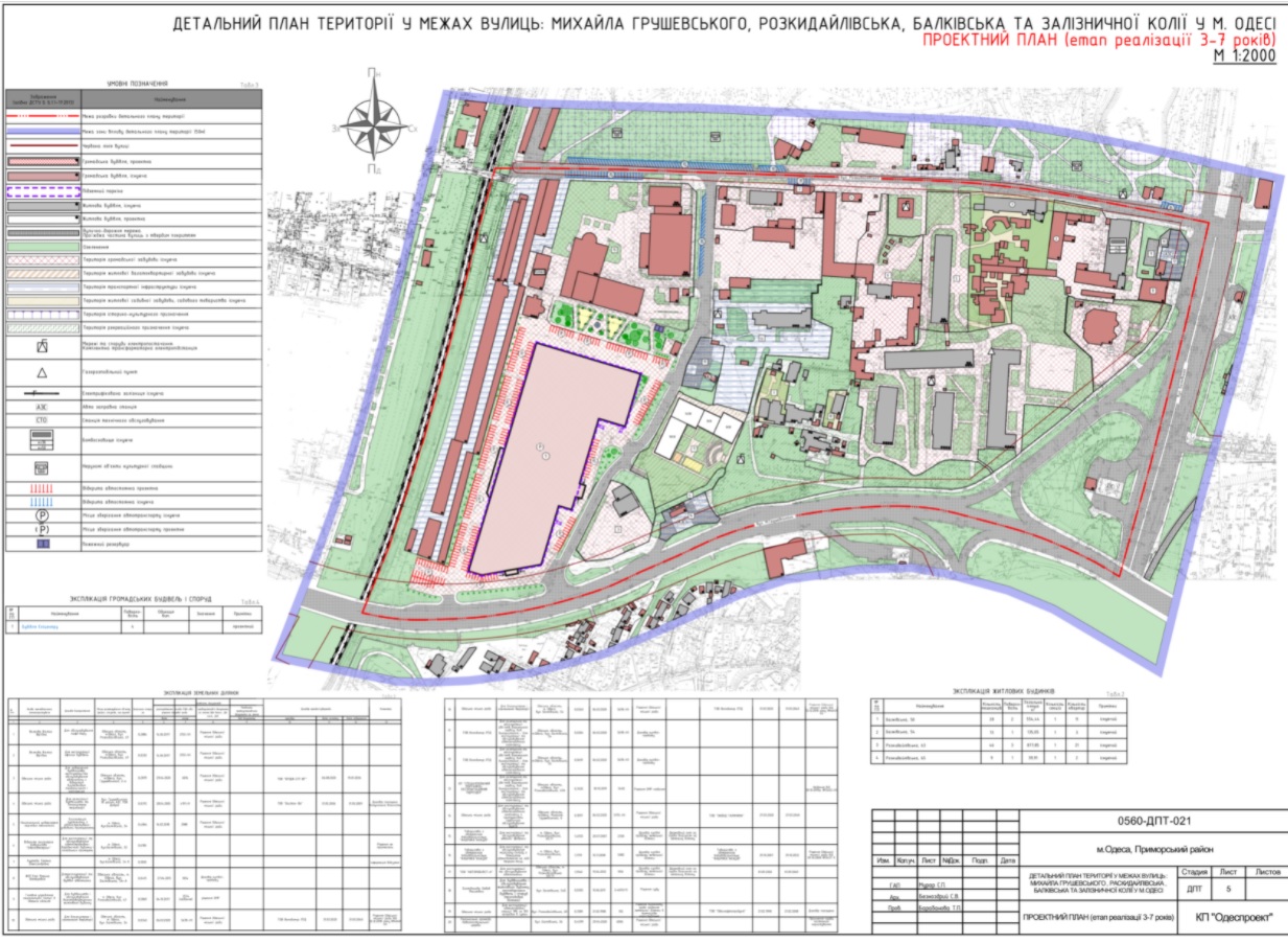 Відповідно до положень Генерального плану м. Одеси, затвердженого у 2015 році, територія ДПТ відноситься здебільшого до громадської забудови, на частині якої на період реалізації 3-7 років передбачається її реконструкція під будівництво торгівельного центру.