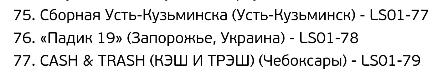 • "Падик-19", Запорожье втиснулся между Сборной Усть-Кузьминска и "Кэшем и Трэшем" из самих Чебоксар.
