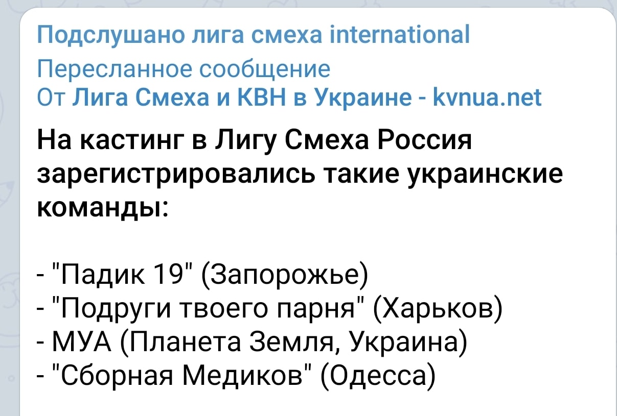 «• одесская команда "Сборная медиков" имеет честь выступать после команды "Дуэт имени нет" из "донецкой народной республики"