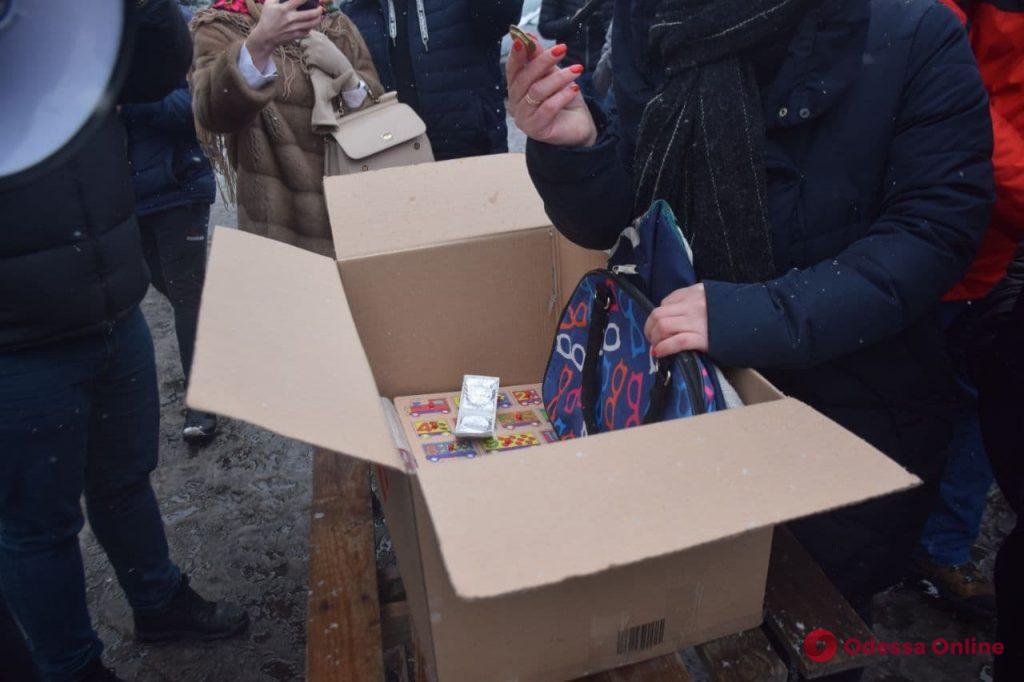 Але, як зазначає видання Odessa.online, завершити акцію вирішили зібранням коробки з товарами, які на період локдауну не можна купити. У коробці зібрали зошити, шпалери, рюкзаки, презервативи. Цю посилку підприємці вирішили відправити президенту України Володимиру Зеленському