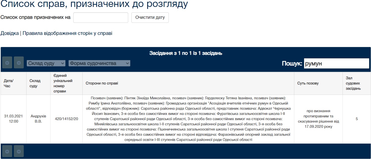 Як йдеться на сайті суду, з відповідним позовом до суду звернулась ГО «Асоціація вчителів етнічних румун в Одеській області» та жителі Татарбунарського, Ізмаїльського, Саратського, Ренійського та інших районів Одещини.