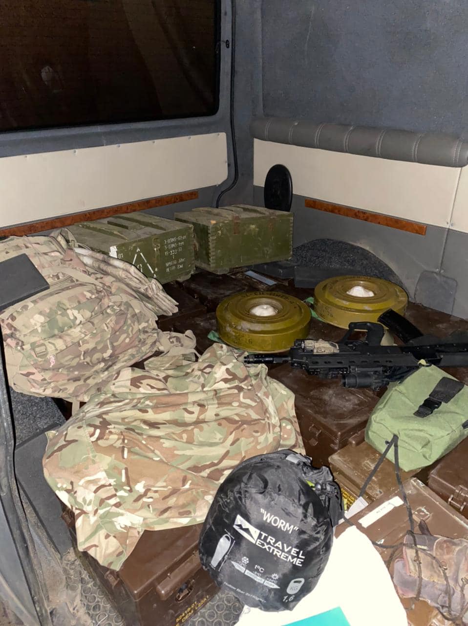 У затриманому мікроавтобусі виявили зброю (в тому числі автомати, гранатомети), боєприпаси, міни, вибухівку. Також затримано одного з диверсантів, особа якого встановлюється. Пошук решти диверсантів триває. Серед захисників України є поранені.