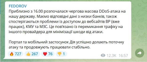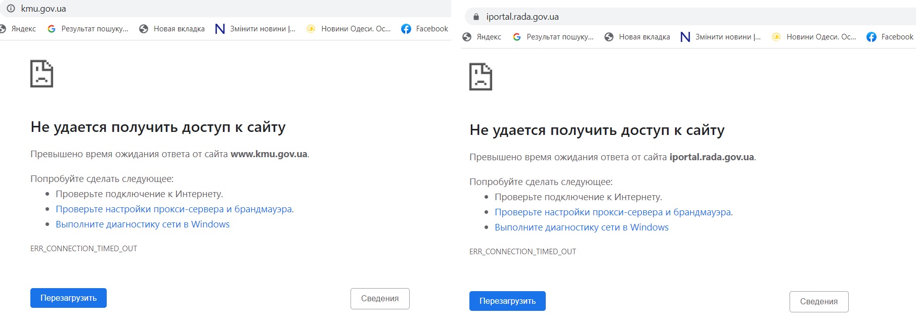 За повідомленням фахівців, причина падіння ресурсів – DDOS-атака. Технічні служби працюють над усуненням неполадок.