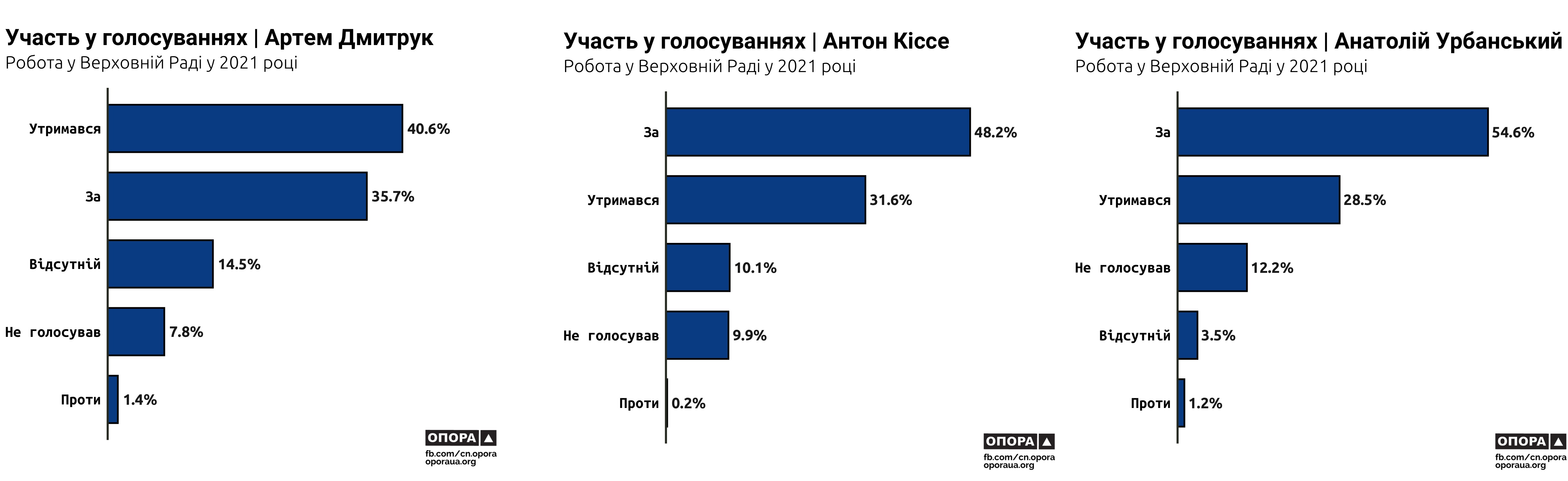 Голосування Антона Кіссе та Анатолія Урбанського у 32% та 32,6% голосувань відповідно відрізняються від того, як голосували представники депутатської групи "За майбутнє", до якої входять вказані депутати.