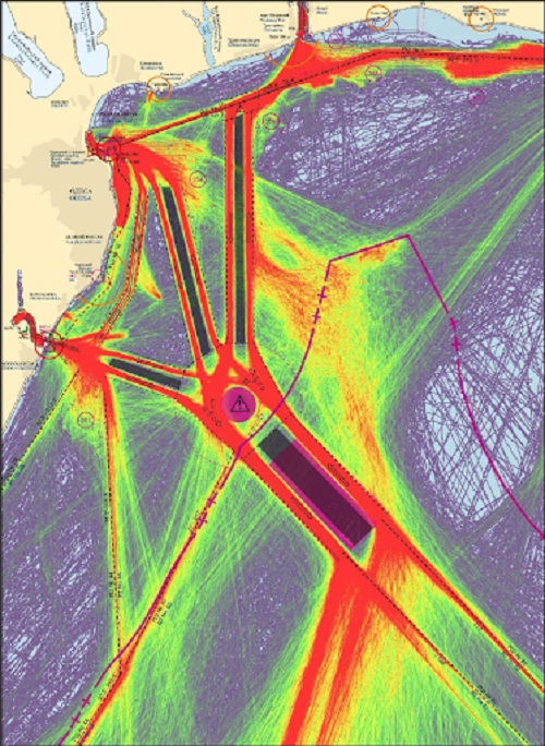Схема руху суден в районі СРР "Підходи до портів Чорноморськ, Одеса та Південний" за даними Автоматичної ідентифікаційної системи (АІС)