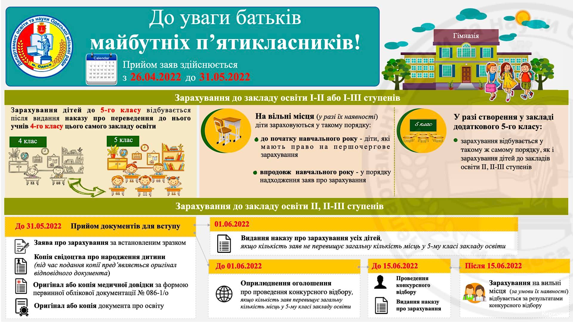 Департамент освіти та науки Одеської міськради оприлюднив роз'яснення для батьків школярів, які переходитимуть до п'ятого класу в наступному навчальному році.