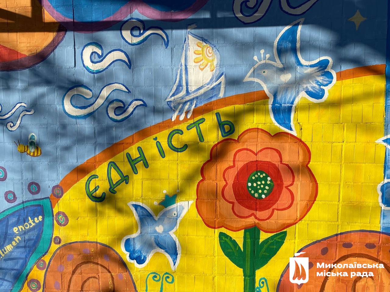 У Миколаєва з'явився новий вуличний стінопис, який місту подарували місцеві автори. Ідея полягає в тому, що в темні часи війни хочеться трохи світла, добра, аби це несло радість людям і трохи висмикувало з ситуації, в якій зараз живуть миколаївці.