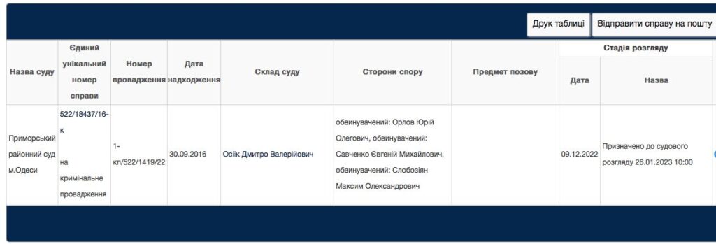 Ймовірних співучасників Савченка звуть Юрій Орлов та Максим Слободзян. Справу щодо них досі розглядає Приморський районний суд Одеси. Окрім замаху на вбивство їх звинувачують в хуліганстві, нанесенні умисних тілесних ушкоджень середньої тяжкості, незаконному виготовленні й перероблюванню зброї.