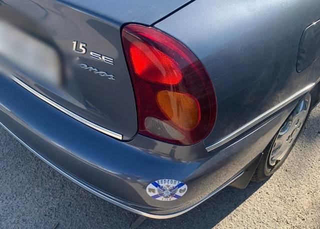 Вказаний "ЗАЗ-Ланос" працівники патрульної поліції помітили та зупинили на одній з вулиць Херсона. На автомобілі інспектори дійсно побачили наклеєні на бампері прапор та герб країни-агресора з надписом "ХерсонЬ".