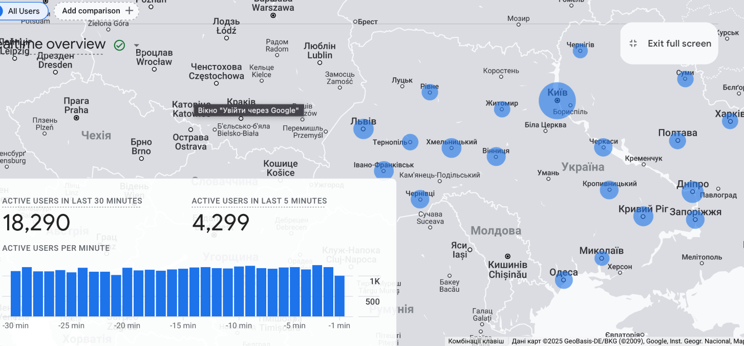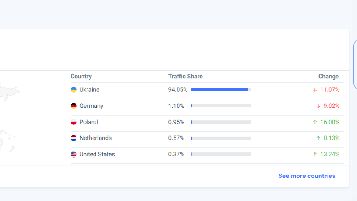Переважна більшість відвідувачів сайту ВРУ (94%) — це користувачі з України. Крім цього, помітна активність користувачів із Німеччини, Польщі, Нідерландів і США, що пояснюється міграцією українців після початку повномасштабного вторгнення.