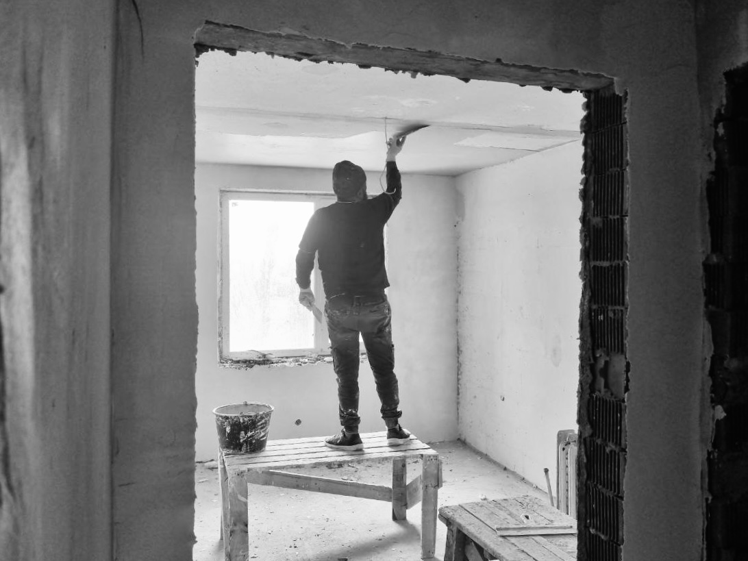Наразі демонтується старе тинькування на стелях і стінах, а також труби, двері, люстри та світильники. Розбирається підлога та прибирається сміття. Будівельники влаштовують міжкімнатні перегородки та стіни, тинькують їх, продовжують виконувати сантехнічні роботи.