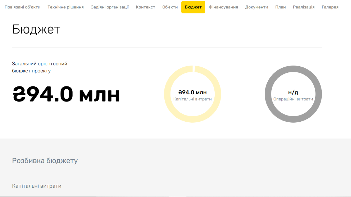 Загальний бюджет проєкту становить 94 мільйони гривень, наразі фінансування ще не підтверджено.