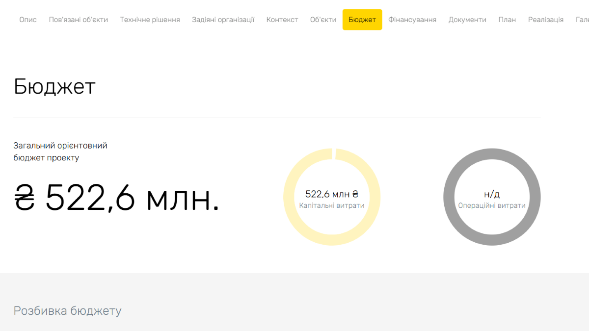 Загальна вартість проєкту становить 522,6 мільйона гривень. Наразі фінансування ще перебуває на етапі пошуку.